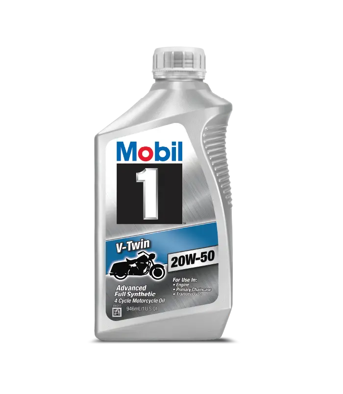 El aceite Mobil 1 V-Twin 20W-50 está específicamente recomendado para lubricar motores de motocicletas de cuatro tiempos en motocicletas de alto desempeño y cumple o excede los niveles de calidad estándar de la industria.